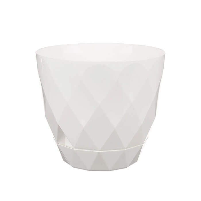 Горшок линейки Laurel объёмом 2,3л и диаметром 17,5см снабжён поддоном и системой прикорневого полива. Стильная и минималистичная рельефная фактура, напоминающая огранку драгоценного камня, и спокойный базовый цвет помогут гармонично вписать горшок в домашний интерьер. Горшок объёмом 2,3л оптимален для средних растений и состоит из корпуса и интегрированного поддона, не выступающего за дно горшка. Корпус горшка имеет несколько дренажных отверстий, обеспечивающих качественную вентиляцию корней растений. Каждый поддон снабжён специальной выемкой для слива лишней жидкости, который рекомендуется при уходе за любыми цветами. Горшок производится из долговечного на 100% перерабатываемого полипропилена.