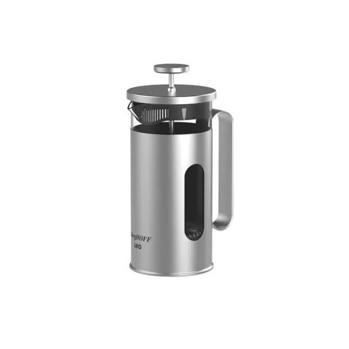 Френч-пресс, или французский пресс, все чаще появляется на современной кухне. Как известно, это специальный кухонный прибор, в котором можно очень быстро и без особых хлопот приготовить ароматный кофе или чай. Времени на заваривание во френч-прессе требуется гораздо меньше, чем в турке или обычном чайнике. В нем также удобно заваривать травяные чаи. Этот френч-пресс от бренда Berghoff – состоит из стеклянной колбы, фильтра-сеточки и плунжера – поршня для отжима с небольшой ручкой. Корпус выполнен из высококачественной нержавеющей стали, прочной, обладающей высокими антикоррозийными свойствами. Колба – из термостойкого стекла. Такой френч-пресс можно использовать как ежедневно, так и для сервировки праздничного стола, благодаря его стильному дизайну. Подходит для мытья в посудомоечной машине