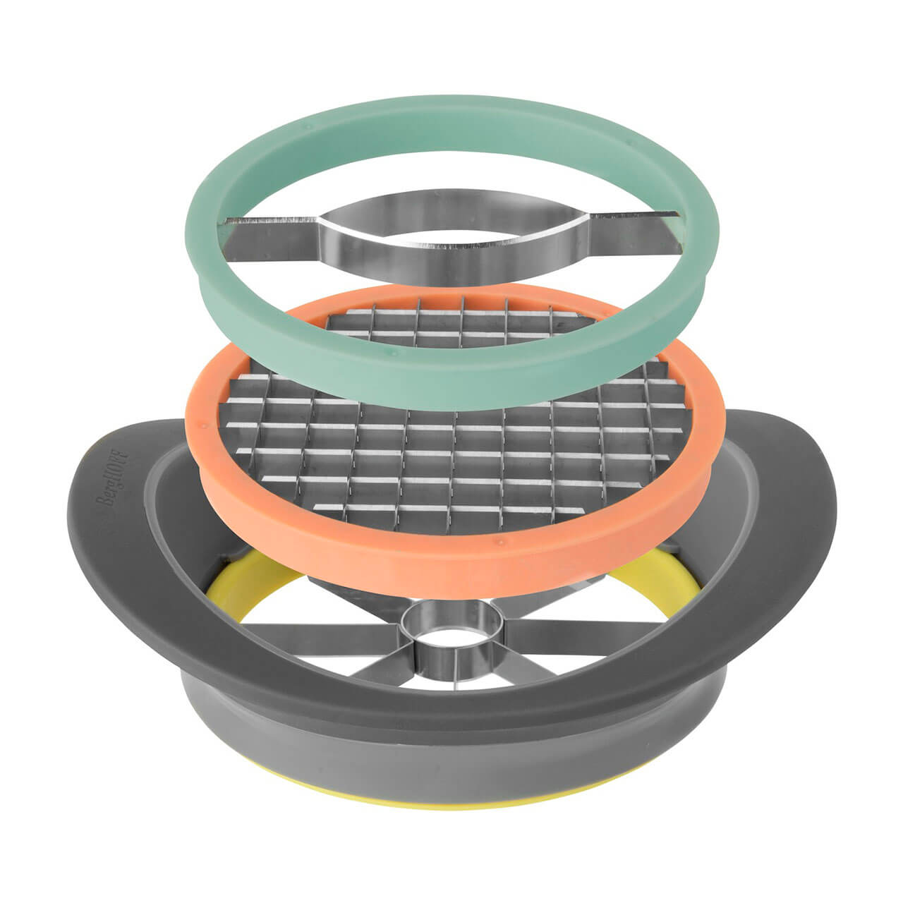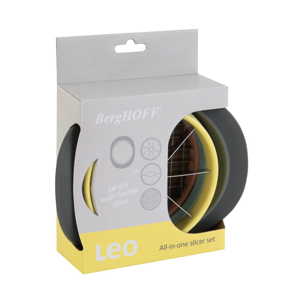 Набор BergHOFF Leo — нарядно и красиво оформленный универсальный инструмент для нарезки фруктов и овощей. Состоит из корпуса и 3-х мультифункциональных сменных лезвий, которые помогут нарезать яблоки, манго, картофель одним простым нажатием.