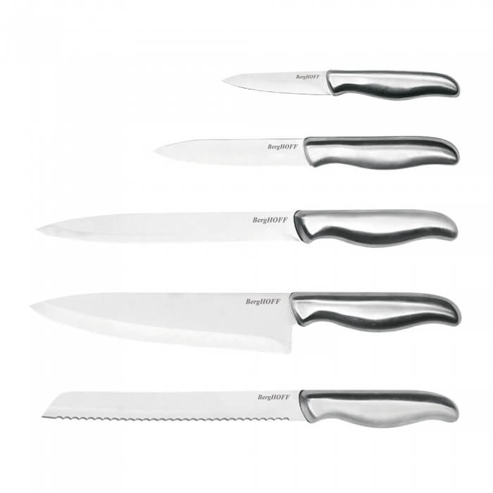 Особенности: набор ножей идеально подходит для нарезки, шинковки и измельчения мяса, рыбы, птицы, выпечки, овощей и фруктов; прочная бамбуковая колода подходит для хранения 5-ти ножей; высококачественная нержавеющая сталь лезвий обеспечит остроту заточки на долгое время; ручки эргономичной формы обеспечивают безопасную и комфортную эксплуатацию; ножи идеально сбалансированы; набор подходит как для профессионального, так и для домашнего использования; легко очищаются
