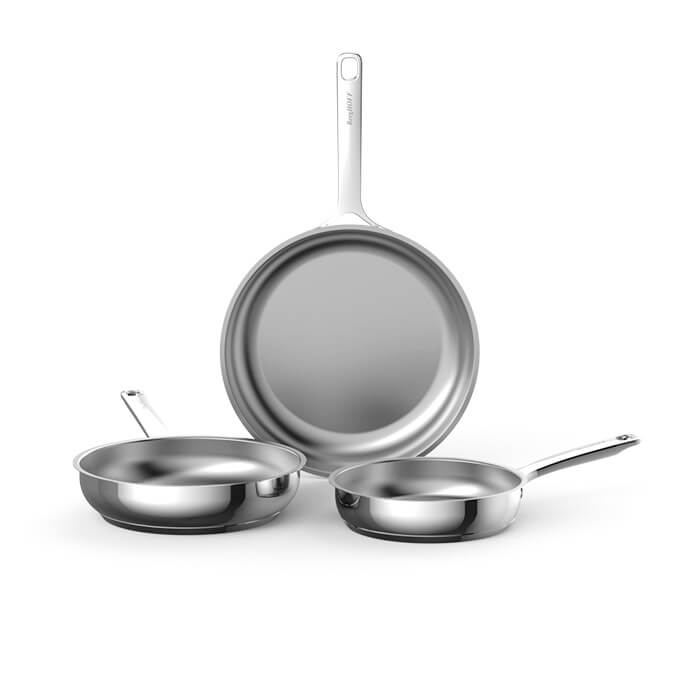 Особенности: корпус предметов изготовлен из переработанной нержавеющей стали и переработанного алюминия с покрытием; 3-х слойное капсульное дно обеспечивает быстрый нагрев и равномерное распределение тепла; две сковороды имееют 100% экологичное и безопасное для здоровья керамическое антипригарное покрытие CeraGreen, которое позволяет жарить практически без масла (не содержит PFAS); на внутренних стенках кастрюль нанесена разметка объема; стильные крышки из черного тонированного стекла со встроенным отверстием для выхода пара; благодаря стеклянным крышкам можно следить за приготовлением блюд; подходят для всех типов плит, включая индукционные; подходят для использования в духовке без крышек; температурная устойчивость до 250°C; температурная устойчивость сковород с покрытием до 180°C; легко очищаются